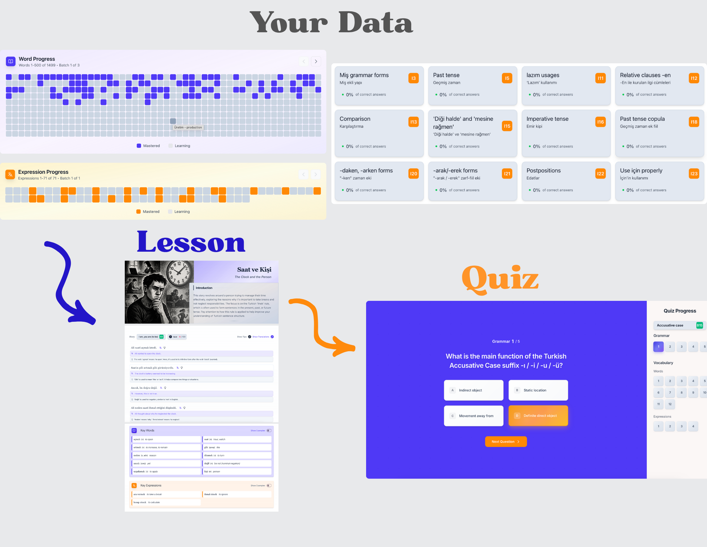 Our Language Learning Platform is designed to train you on your weaknesses so that you improve faster and more efficiently.